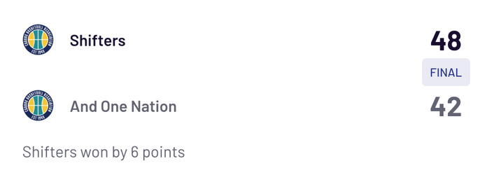 Shifters move up a gear... or three. After a tight match against 2nd placed "And One Nation" in which Shifters prevailed by 6 points, MWAV's rebound heroes sensationally put their foot on the collective throat of the league by thrashing "No Look Turnovers" by a whopping 46 points. That's more than triple their score. In a game that can only be described as pure bully ball, Shifters sent a clear warning to the league that they are coming for the chip. They have moved up to 5th on the ladder and are only two wins away from 2nd. Now is the time for Shifters to keep the pedal to the metal and for us to inspire them to keep going.