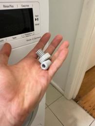 Squint or you'll miss it, this tiny broken plastic dryer leg was discovered during the unload as the team went to place the unit back on top of the washer in the new laundry. About as comprehensive a damage report as one could hope for was submitted by the team and after a quick chat with the customer the replacement leg was ordered, arriving earlier this week.