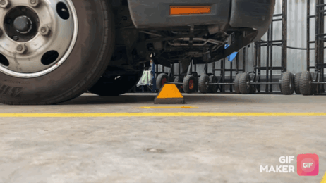 When you park a truck in the walkway, you must drive all the way up until you hit the bump stop. Otherwise, whichever truck parks behind you will be sticking out into the driveway.