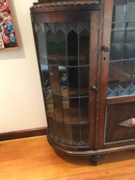Hot off the damage presses this leadlight cabinet suffered an unfortunate run-in with a nearby knee, luckily a minor bingle for both the knee and cabinet with the leadlighting staying mostly intact.