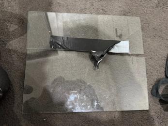 Damaged late June, this issue's tale comes from a broken sliding glass panel on an old, "antique" display unit. Not initially keen on our patented half hour discount at the time of damage occurring the customer temporarily taped the panel back together, planning to contact the head office once the dust had settled post-move.