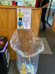 2. Deposit all cans in the plastic bags. They are next to the bins.