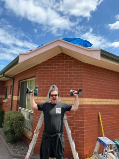 Not pictured: Jake Joyce painstakingly re-tiling the roof.