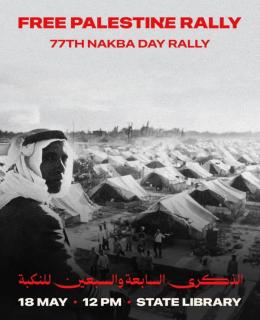 This rally will be to commemorate 77 years of The Nakba (The Catastrophe) against the Palestinian people. The rally will be a lot bigger than the usual Sunday rallies with a 6km walk from the (Yarra) river to the sea (St. Kilda Beach) with an alternative route ending at Camp Sovereignty. There will be a large union presence, so TWU members are especially encouraged to show up and show out to demand peace and the end Australia’s complicity in the genocide. For more information please follow/look too @freepalestinecoalition.naarm @freepalestinemelb