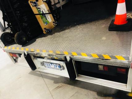 In an effort to prevent a slip and or fall from the back of the truck, black and yellow tiger tape is being applied to the back line of the boxes.