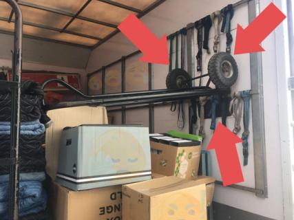 It seems to good to be true. You're running out of space in the pack but you need to store the trolley somewhere. Then you have a great idea "Hang them from the rails!" This seems perfect but it's actually horrible. The weight of the trolley and its bouncy nature puts too much stress on the rails and they will pop out from the wall of the truck. A very big problem. You can strap your trolley in with the white goods or under some boxes or a cabinet.