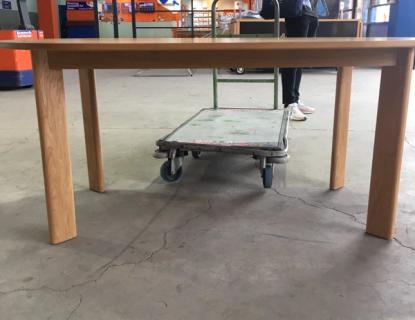An odd tale this issue with the mysterious case of the wonky table leg. After shifting this unit over to a storage facility, the movers and customer discovered a wonky leg seemingly damaged from over tightening a strap. Assuming it has been damaged in transit, the unit was brought back to the depot with the customer was keen on a repair.