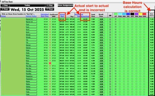 The correct calculation is the “Base Hours” calculation shown below. This has resulted in the “hours worked” calculation being smaller than previously shown. This is understandably frustrating, and we apologise for this error.