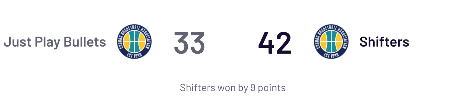 Wednesday night's game was billed as a mid-season showdown for the probable finalists but the 5th placed "Just Play Bullets" had an offensive off night, choking on their usual diet of easily digestible Dunkeroos™.
